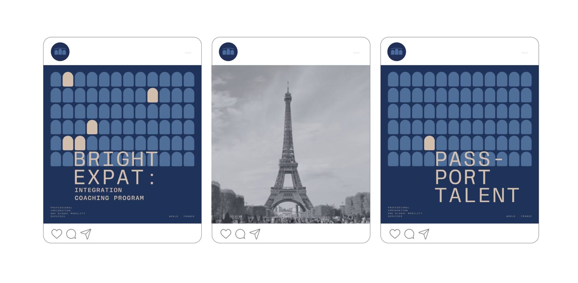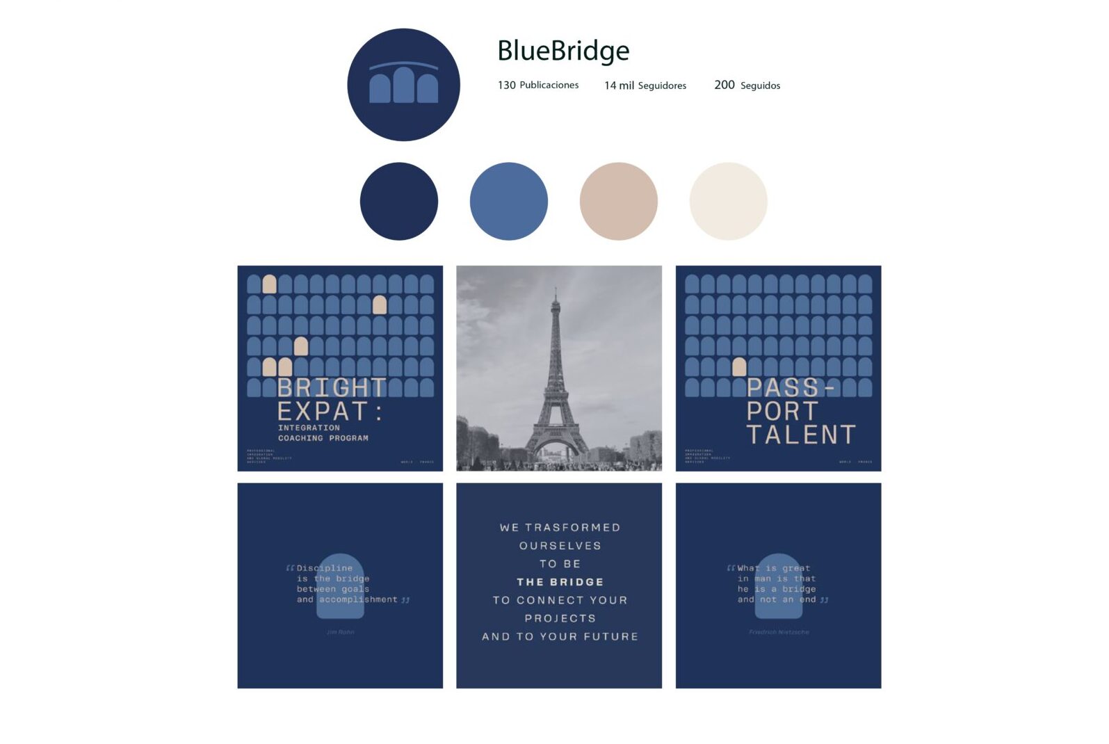 Desde este proyecto desarrollamos la estrategia y la identidad visual desde el concepto de marca “Ser puente”, tanto para las empresas que quieren establecer sus negocios en Francia o profesionales y/o artistas que aspiran tener oportunidades en dicha ciudad.